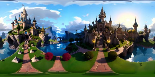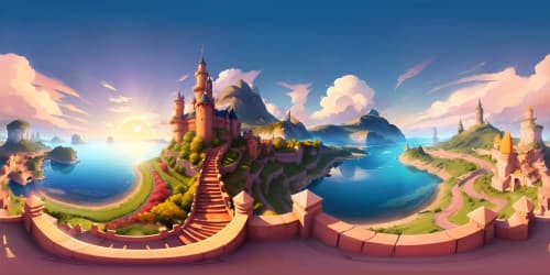 VR360 panorama, blazing sun mastery, fiery horizon spectacle, ultra-high-resolution. Cobblestone streets, sizzling, shimmering heat. Ice cream cones, drippy puddles, stark contrasts. White ice cream swirls, luscious, enticing texture, chilling counter to simmering ambience. Picasso-style, abstract yet intriguing VR360 artistry. Surreal, immersive, vivid melting