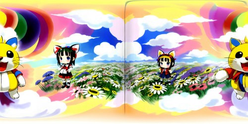 VR360 paradise, ultra-high resolution, palm trees framing view, turquoise sea against fine white sand, lush waterfall in distance, bright tropical flowers. VR360 masterpiece rendering, vibrant Pixar-style colors, detailed textures, distinct contrasts.