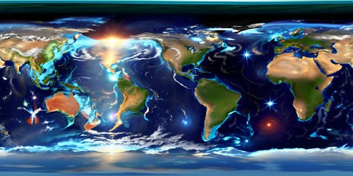 A breathtaking, vast highlands landscape in Ethiopia, showcasing terraced lush green valleys, cascading waterfalls, towering cliffs under a golden sunrise, punctuated with vibrant wildflower fields and dramatic cloud formations.