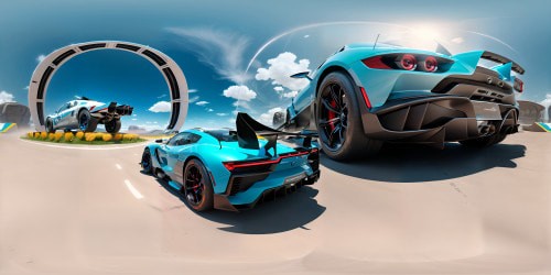 Cool sports car, gleaming chrome detailing, leather dashboard, racing stripes, VR360 cockpit view. Pixel-style rendering, vibrant colors, ultra-high res textures. Inconceivable depth, pixel art masterpiece, VR360 skyline highway backdrop.