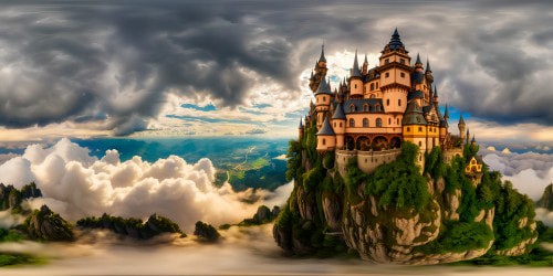 8K-M3 Advanced (artistic)A majestic flying fortress, reminiscent of Studio Ghibli's enchanting style, adorned with whimsical features under a canvas of dynamic skies, entwined with cascading waterfalls, and ethereal gardens suspended in the air, a masterpiece of ultra-high-resolution detail.