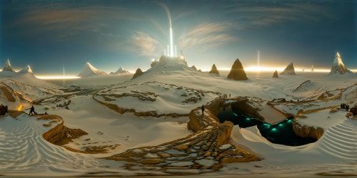 Radiant RealismMoonlit foggy lake, VR360 masterpiece, ultra high-res, peak winter. Foggy mist swirling around mountain contours, evergreen forest canvas. Moon's ethereal glow piercing fog, amorphous reflections on icy lake. Grandeur, ghostly impressionist style, VR360 panorama. Pristine beauty, elusive quality, night canvas bathed in soft