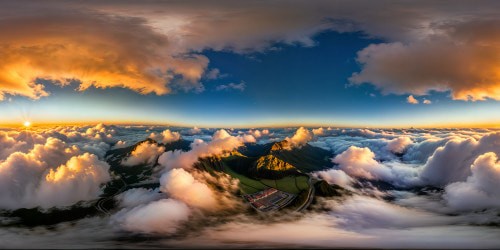 8K-M3 Above the CloudsFlawless Mediterranean coastline at golden hour, crystal-clear waters lapping on pristine sandy shores, vibrant seaside village nestled against towering cliffs, under a sky painted with hues of flaming tangerine and lilac, captured in breathtaking ultra-high resolution.