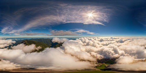 VR360 panorama, blazing sun mastery, fiery horizon spectacle, ultra-high-resolution. Cobblestone streets, sizzling, shimmering heat. Ice cream cones, drippy puddles, stark contrasts. White ice cream swirls, luscious, enticing texture, chilling counter to simmering ambience. Picasso-style, abstract yet intriguing VR360 artistry. Surreal, immersive, vivid melting