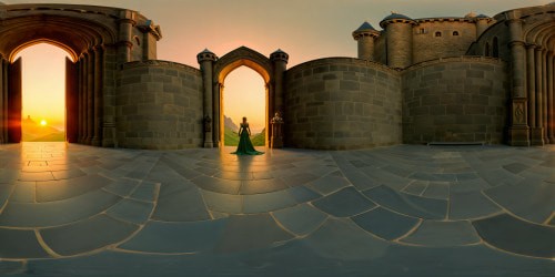 8K-M3 Magic RealismSurrounded by lush greenery, Hyrule Castle stands as a majestic ancient fortress with soaring towers, ivy-clad stone walls, glowing with the hues of the setting sun against a backdrop of snow-capped mountains and a crystal clear lake, the whole scene is an immersive, ultra-high-resolution masterpiece.