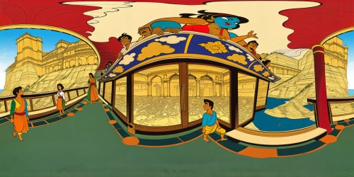 Classic movie palace ambiance, Amsterdam's Tuschinski inspiration, VR360 central seat perspective. Silver screen dominance, opulence abound, intricate detailing, plush textures. Luxurious aesthetic, ultra high-res, masterpiece rendering, VR360 richness. Classic cinema charm meets modern digital painting finesse.