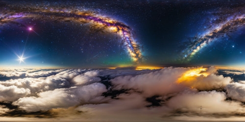 8K-M3 Above the Clouds (Featured)A flawless, ultra-high-resolution cosmic mural, depicting a breathtaking celestial vista under a twinkling blanket of stars with intricate, shimmering cosmic constellations that create a masterpiece of the night sky.