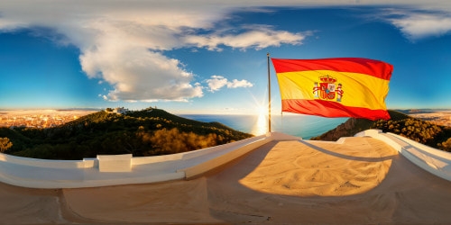 8K-M3 Cinematic RealismA striking, flawless depiction of an enormous Spanish flag billowing majestically against a clear azure sky, perfectly detailed in ultra-high resolution, a patriotic masterpiece.