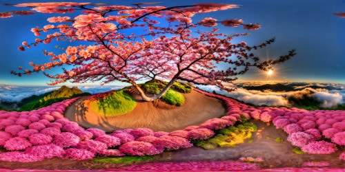 8K-M3 Above the CloudsA mesmerizing cherry blossom tree in full pink bloom, set against a cosmic backdrop of swirling petals, with a divine goddess bathed in a luminous halo of light, an ethereal masterpiece captured in flawless ultra-high resolution detail.