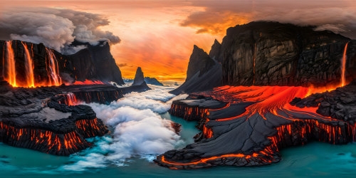 8K-M3 Above the CloudsVast fiery realms of an infernal landscape, sprawling jagged obsidian peaks, cascading rivers of lava, billowing sulfurous clouds, a blood-red sky, towering demonic citadels, tormented souls writhing in eternal agony, in ultra high resolution, a vision of hellish perfection.