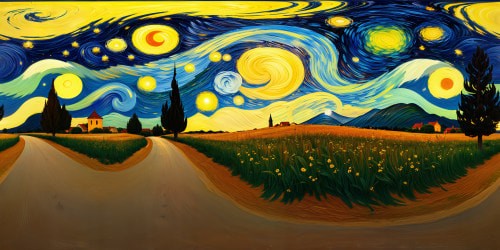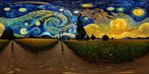 Immerse yourself in a stunning, flawless anime rendition of Van Gogh's iconic style, depicting a picturesque countryside alive with vibrant hues, textured brushwork, and a mesmerizing starry night sky, transcending boundaries with its ultra-high-resolution splendor.