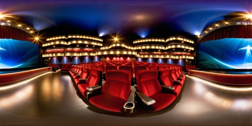 In the ornate main screening room of a classic grand movie theatre like Amsterdam Tuschinski, the view from the middle seat reveals a masterpiece of elegant decor, boasting high-quality details in ultra-high resolution.