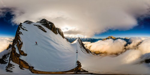 8K-M3 Above the CloudsA flawless, breathtaking tightrope stretched between towering snowy peaks, the sun-kissed mountain ranges in ultra high resolution, capturing every detail of the grandeur and daring intricately, a masterful masterpiece of breathtaking beauty.