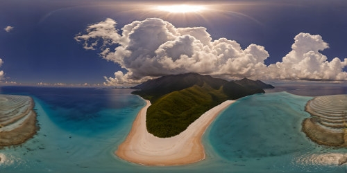 8K-M3 Above the CloudsA flawless, breathtaking beach oasis under a cloudless cerulean sky, pristine golden sands, crystal-clear waters reflecting the sun, with seashells scattered like treasures; a sun-kissed, picturesque paradise captured in unparalleled ultra high resolution detail.