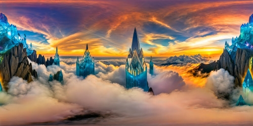 8K-M3 Above the CloudsAn ethereal, breathtaking ethereal realm adorned with colossal crystal spires, iridescent gems, cosmic swirls, and luminous teleportation platforms set against a kaleidoscopic sky, all meticulously detailed in an ultra-high resolution, a true artistic masterpiece of cosmic wonder.