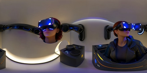 CyberpunkMasterpiece, ultra-high resolution, stunning VR360 visual, richly textured surfaces, intricately rendered forms, Pixar-style finesse. Glossy, three-dimensional elements, vibrant palette, spectacular light play in VR360 perspective. High-quality detail emphasis, pristine, polished finish.
