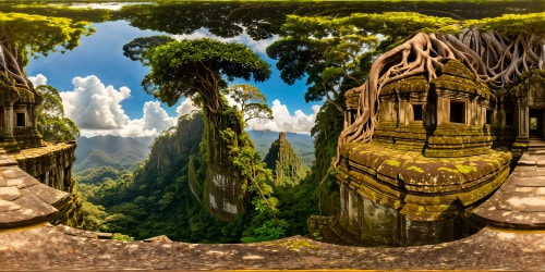 8K-M3 Above the CloudsA magnificent, flawlessly detailed ancient temple nestled in lush jungle foliage, intricate carvings cascading over weathered stones, sunlight filtering through dense leaves, vibrant moss clinging to every surface, all presented in ultra high-resolution, a true visual masterpiece.