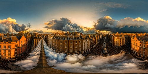 8K-M3 Above the CloudsIntricately detailed, flawlessly rendered scene of a bustling British street during the 1940 Blitz, people scattered in the dimly lit streets, with eerie shadows and glowing windows, capturing the tension of wartime, high resolution perfection.