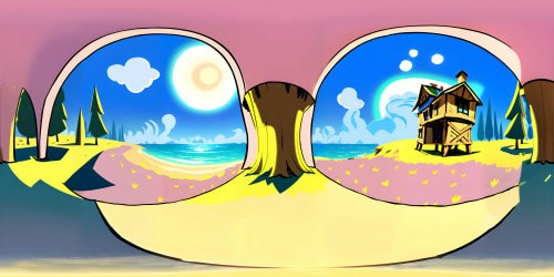 VR360 panorama, blazing sun mastery, fiery horizon spectacle, ultra-high-resolution. Cobblestone streets, sizzling, shimmering heat. Ice cream cones, drippy puddles, stark contrasts. White ice cream swirls, luscious, enticing texture, chilling counter to simmering ambience. Picasso-style, abstract yet intriguing VR360 artistry. Surreal, immersive, vivid melting