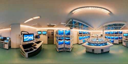 8K-M3 Above the CloudsWithin an ultra-high resolution medical laboratory, intricate equipment gleams under crisp, clinical lighting, revealing a sterile environment with advanced technology humming softly amidst rows of glass vials and digital screens.