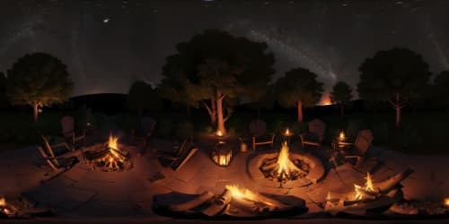 In the serene woods, a campfire glows amidst the dancing fireflies, creating a mesmerizing natural spectacle.