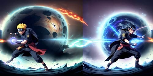 Naruto and Sasuke clash in a fierce battle at The Valley of the End, showcasing their incredible strength and determination.