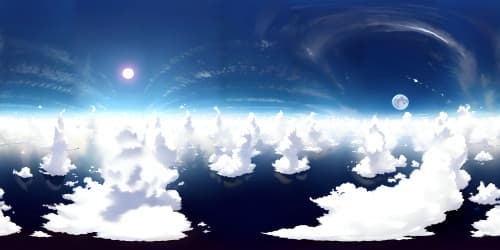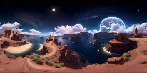 The dreamy night sky is adorned with wispy clouds and a radiant moon shining its gentle light.