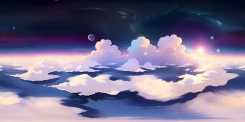 In the serene night sky, birds fly amidst the interplay of majestic clouds, while stars twinkle in harmony.