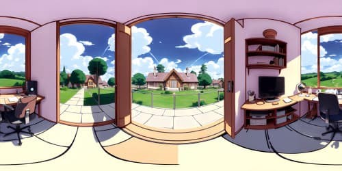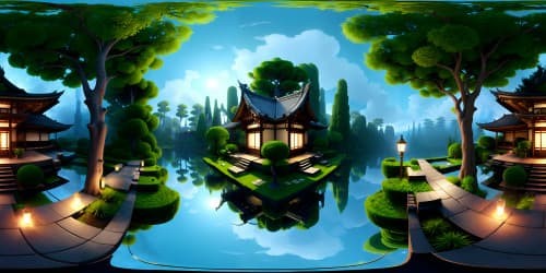 In this panorama image, a serene lake house can be seen, offering a peaceful and picturesque setting.