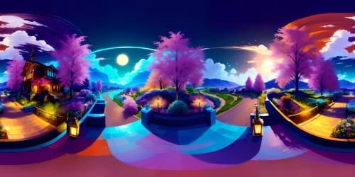 VR360 panorama, blazing sun mastery, fiery horizon spectacle, ultra-high-resolution. Cobblestone streets, sizzling, shimmering heat. Ice cream cones, drippy puddles, stark contrasts. White ice cream swirls, luscious, enticing texture, chilling counter to simmering ambience. Picasso-style, abstract yet intriguing VR360 artistry. Surreal, immersive, vivid melting