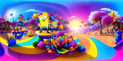 In this panorama image, a cheerful and iconic character, Spongebob, is likely featured, bringing joy and laughter to the scene.