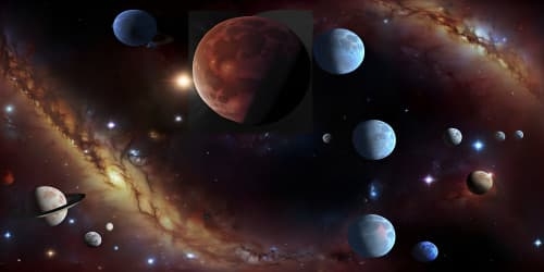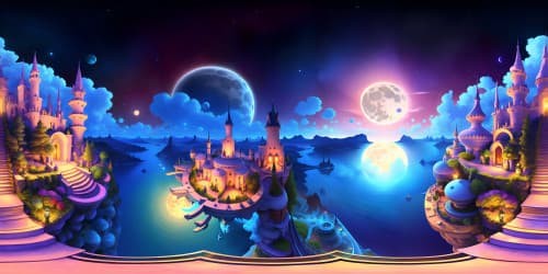 In the enchanting night sky, a blood moon dominates, casting an eerie glow upon the world below.