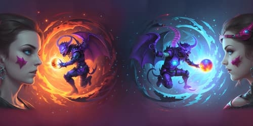 In this panoramic image, a riveting battle between God and a fearsome demon unfolds, showcasing the ancient struggle between good and evil.