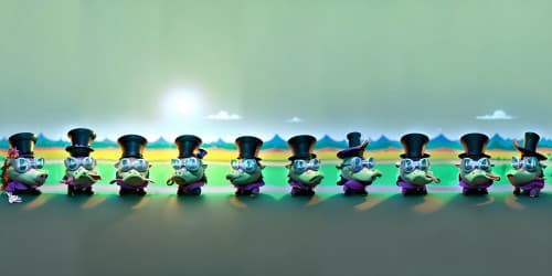 three little pigs wearng tophats and darkglasses are eating ham sandwiches low poly triangles