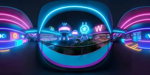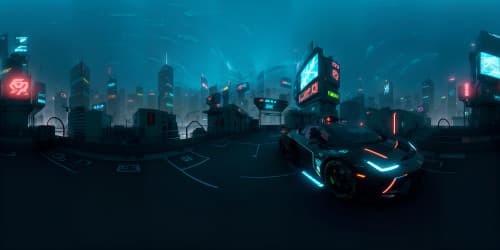 The city glistens with bright neon lights, creating a mesmerizing and vibrant atmosphere.