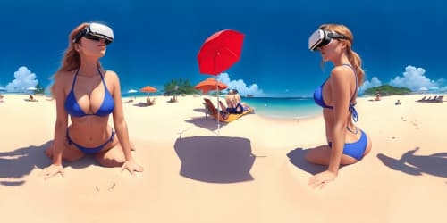 WOMEN AT THE BEACH WEARING SWIMSUITS