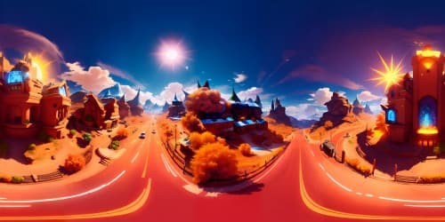 In this panorama image, a fierce furry creature dominates the scene, ready to devour its next victim.