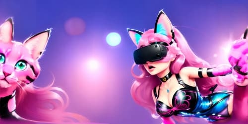 barbie boy wearing pink vr glasses with cute cat ears ,