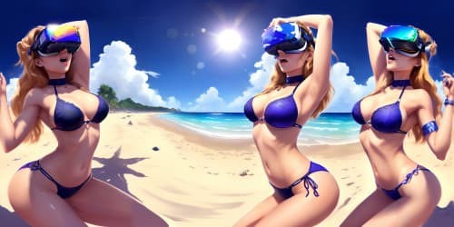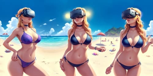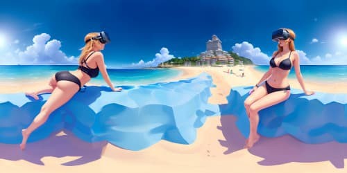 WOMEN AT THE BEACH WEARING SWIMSUITS