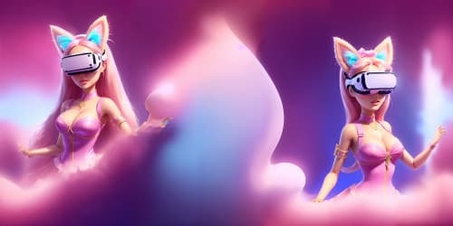barbie boy wearing pink vr glasses with cute cat ears , Ken