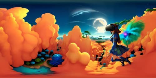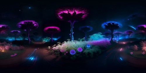 VR360 Pandora's jungle in Avatar, bioluminescent flora, intriguing creatures, majestic, towering trees. Ultra-high-resolution, exquisite masterpiece quality, vivid colors, refined detailing. Pixar-like style, seamless blend of fantasy and realism.