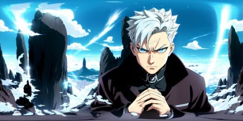 Jujutsu Kaisen. only Gojo Satoru in his silver hair and all black clothes. crystal blue eyes