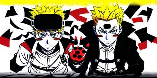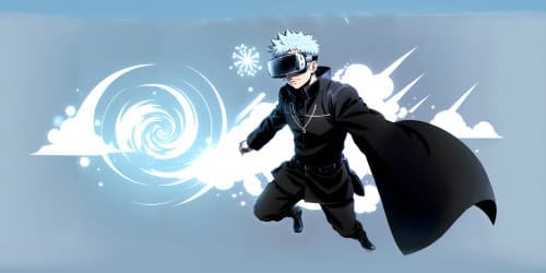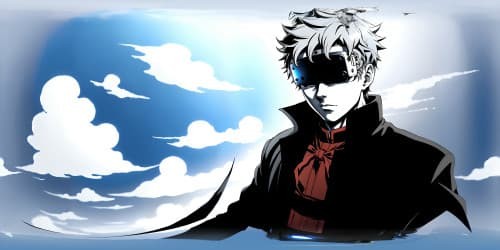 In this Manga style panoramic image, Gojo Satoru from Jujutsu Kaisen is portrayed wearing his iconic blinder.