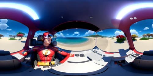 In this Realistic style panoramic image, Grant Gustin, portraying The Flash, is seen running away from Garrick, who is depicted as Zoom.
