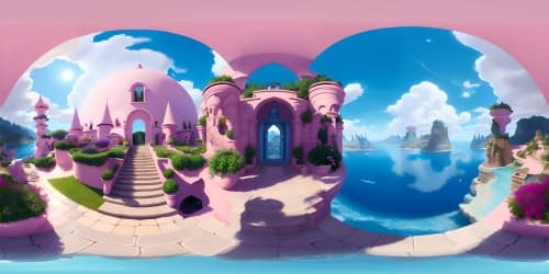 VR360 panorama, blazing sun mastery, fiery horizon spectacle, ultra-high-resolution. Cobblestone streets, sizzling, shimmering heat. Ice cream cones, drippy puddles, stark contrasts. White ice cream swirls, luscious, enticing texture, chilling counter to simmering ambience. Picasso-style, abstract yet intriguing VR360 artistry. Surreal, immersive, vivid melting