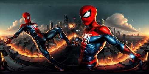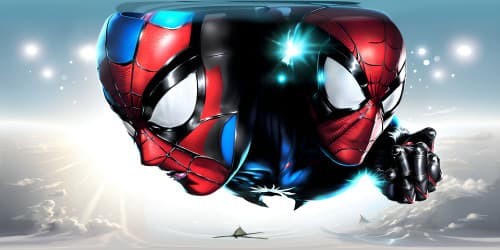 In this digital painting, Spiderman is showcased donning a sleek, all-black suit in a dynamic full-body shot.