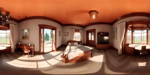 VR360 panorama, blazing sun mastery, fiery horizon spectacle, ultra-high-resolution. Cobblestone streets, sizzling, shimmering heat. Ice cream cones, drippy puddles, stark contrasts. White ice cream swirls, luscious, enticing texture, chilling counter to simmering ambience. Picasso-style, abstract yet intriguing VR360 artistry. Surreal, immersive, vivid melting
