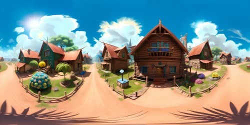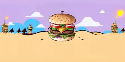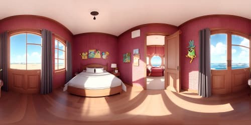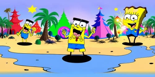 In this vibrant panoramic image, Spongebob is joyfully dancing in a cartoon world.