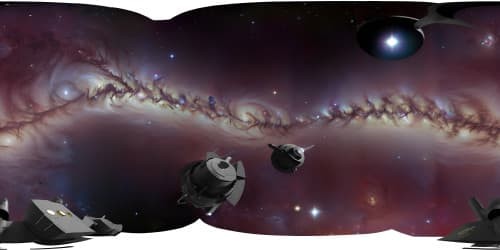 In this mesmerizing 8k panoramic image, a breathtaking galaxy unfolds, unveiling the awe-inspiring wonders of deep space.