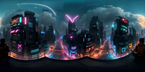 The panoramic image captures a vibrant cityscape, showcasing the bustling energy and modern architecture with a blend of diverse cultures.